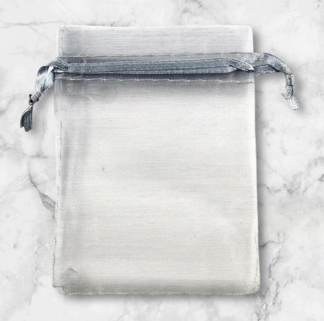 Deze grijs gekleurde organza zakjes van ongeveer 7x9 cm