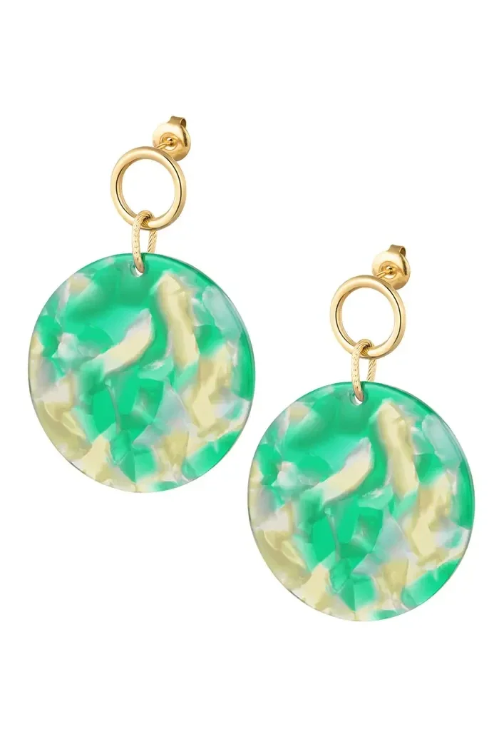 Oorbel cirkel melange groen - goud