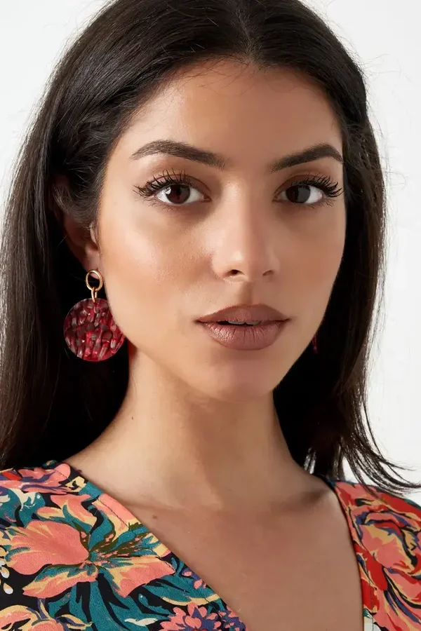 Oorbel cirkel met gouden detail rood - goud