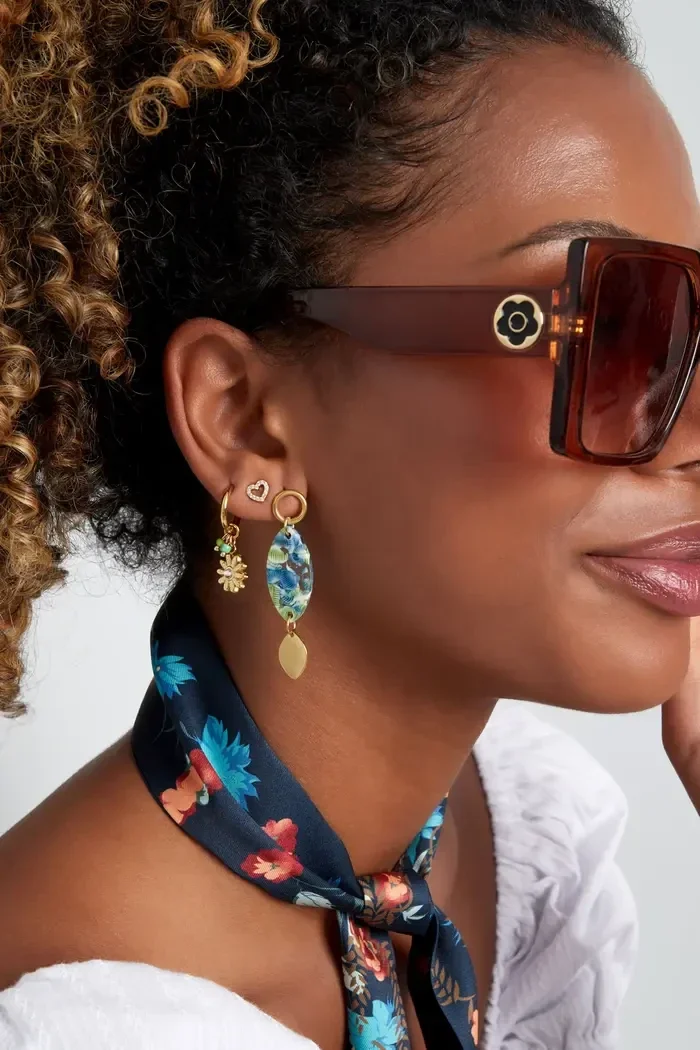 Oorbellen ovaal met print blauw groen - goud
