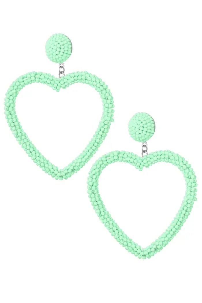 Wauw! Met deze prachtige oorbellen in de vorm van mint groene hartjes steel jij de show! De oorbellen zijn prachtige eyecatchers en zijn superleuk te dragen