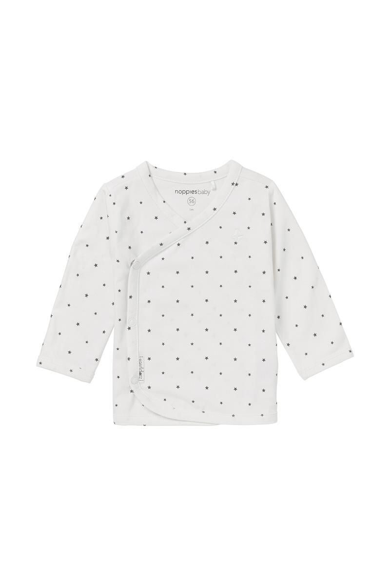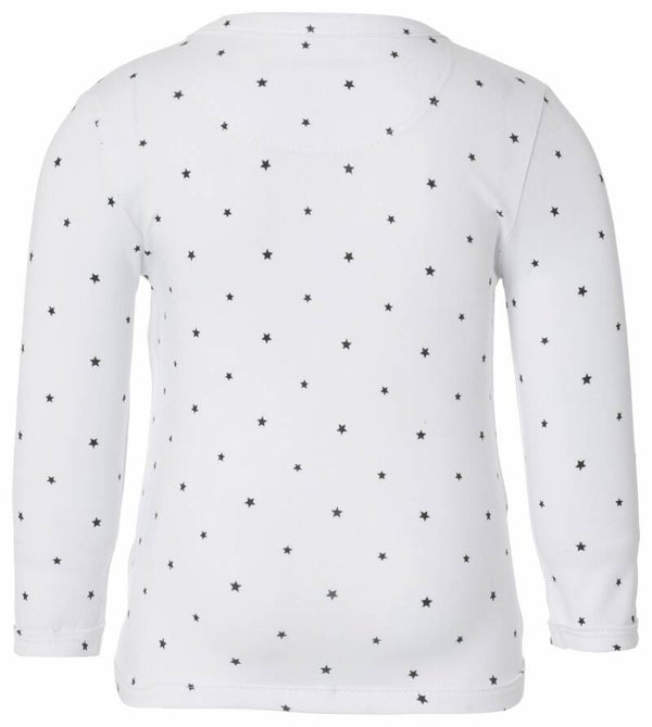 Deze unisex longsleeve Anne met sterrenprintje van Noppies heeft een overslag met drukknoopjes die extra gemak bieden bij het aankleden. Het shirtje draagt zacht en comfortabel. En is zowel leuk voor jongens als meisjes.