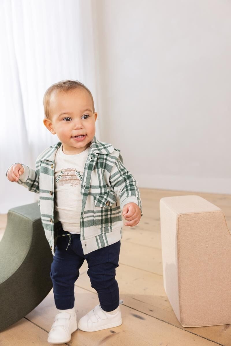 Zachtheid, zachtheid en nog eens zachtheid! Dit te gekke lange mouwen T-shirt voor jongens staat garant voor ultiem comfort. Als je op zoek bent naar een comfortabel kledingstuk voor je kleine jongen, dan maak je met dit item een geweldige keuze. Om het jou zo eenvoudig mogelijk te maken, is het kledingstuk voorzien van een drukknoop. Hierdoor is het aan- en uitkleden van je baby een makkie. Naast dat het Gemenos lange mouwen T-shirt veel comfort biedt, is het ook een modieus item. De zachte tint in combinatie met de leuke print voegt een vleugje stijl toe aan iedere outfit. De drukknoop en ronde hals geven het item een speelse en trendy uitstraling.