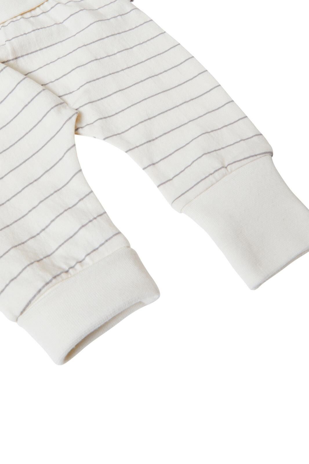 Unisex broek Badin heeft een streepjespatroon en een handige omklapbare taille die zorgt voor extra comfort. Het heeft een relaxed fit en valt dus lekker losjes om de beentjes. De bredere boorden zijn omklapbaar. Handig voor als het broekje nog wat lang is, maar het zorgt er ook voor dat de pijpjes niet omhoog kruipen. Fijn!