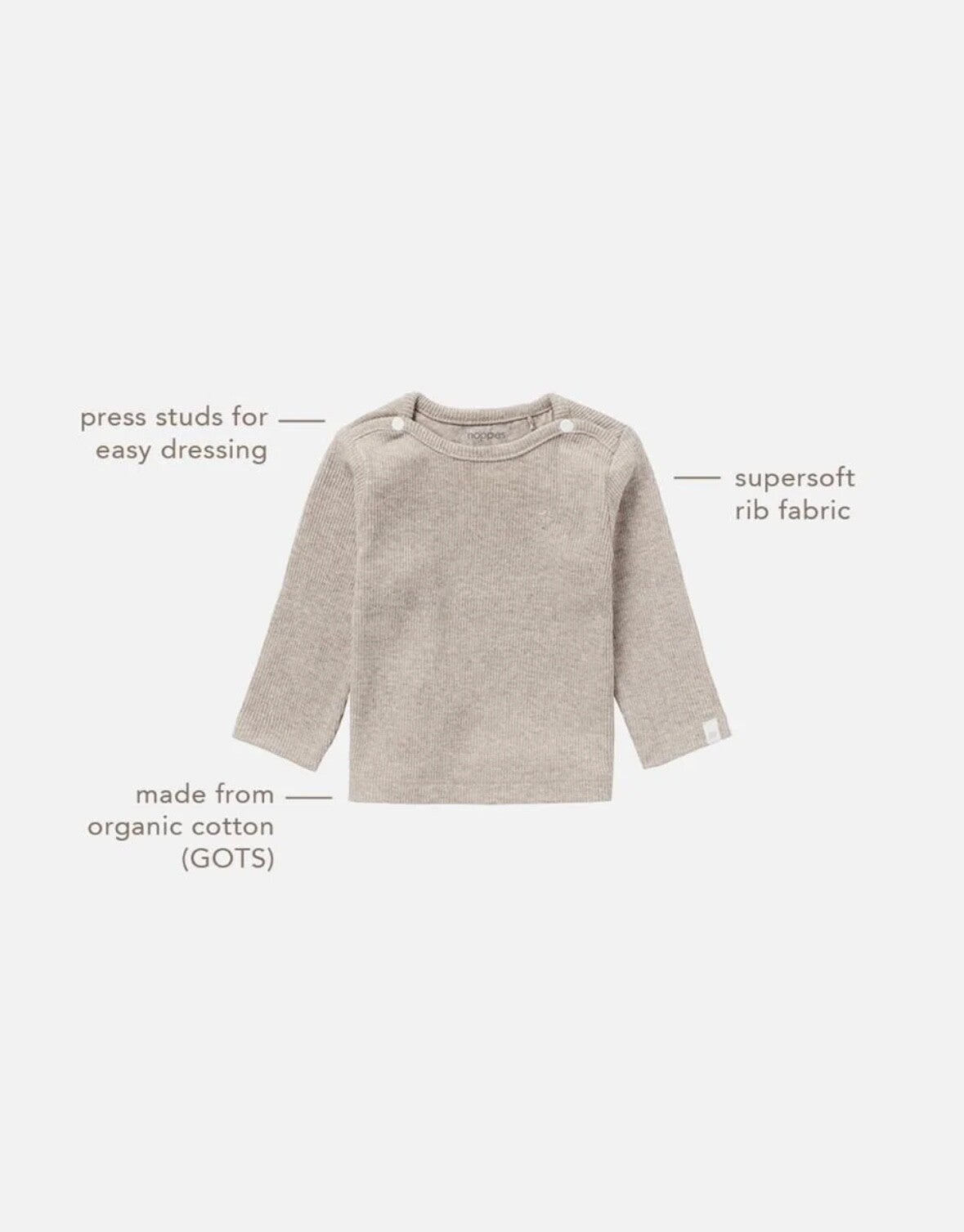 Longsleeve shirt Natal - Zachtheid en comfort zijn belangrijk voor je kleintje, de Noppies Baby collectie zit vol met items die daar voor zorgen. Dit geribde longsleeve shirt is heerlijk om te dragen voor je baby. Het shirtje heeft een ronde hals met handige drukknoopjes waardoor het aan- en uittrekken net wat makkelijker gaat