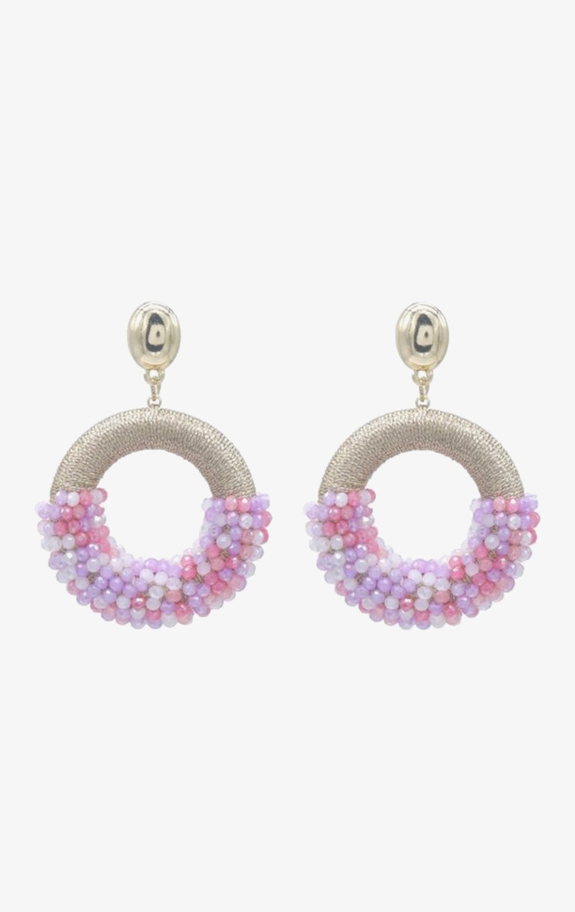 Leuke en mooie oorbellen met daaraan een ovale kraal. Hierdoor hangt een rond deel dat is bezet met kleine kraaltjes.
