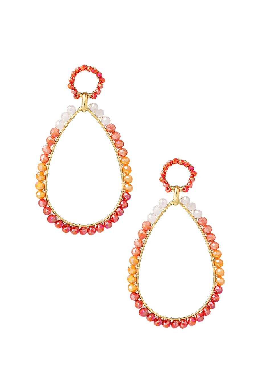 Kralenoorbellen druppel - rood/oranje