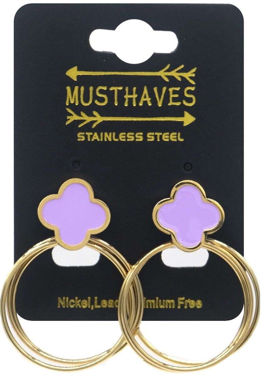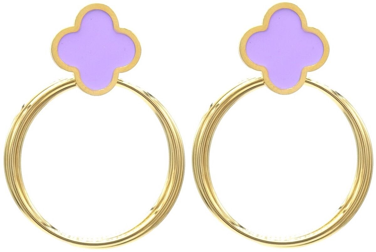 Oorbellen met Klavertje Vier - Goudkleurig en Paars
