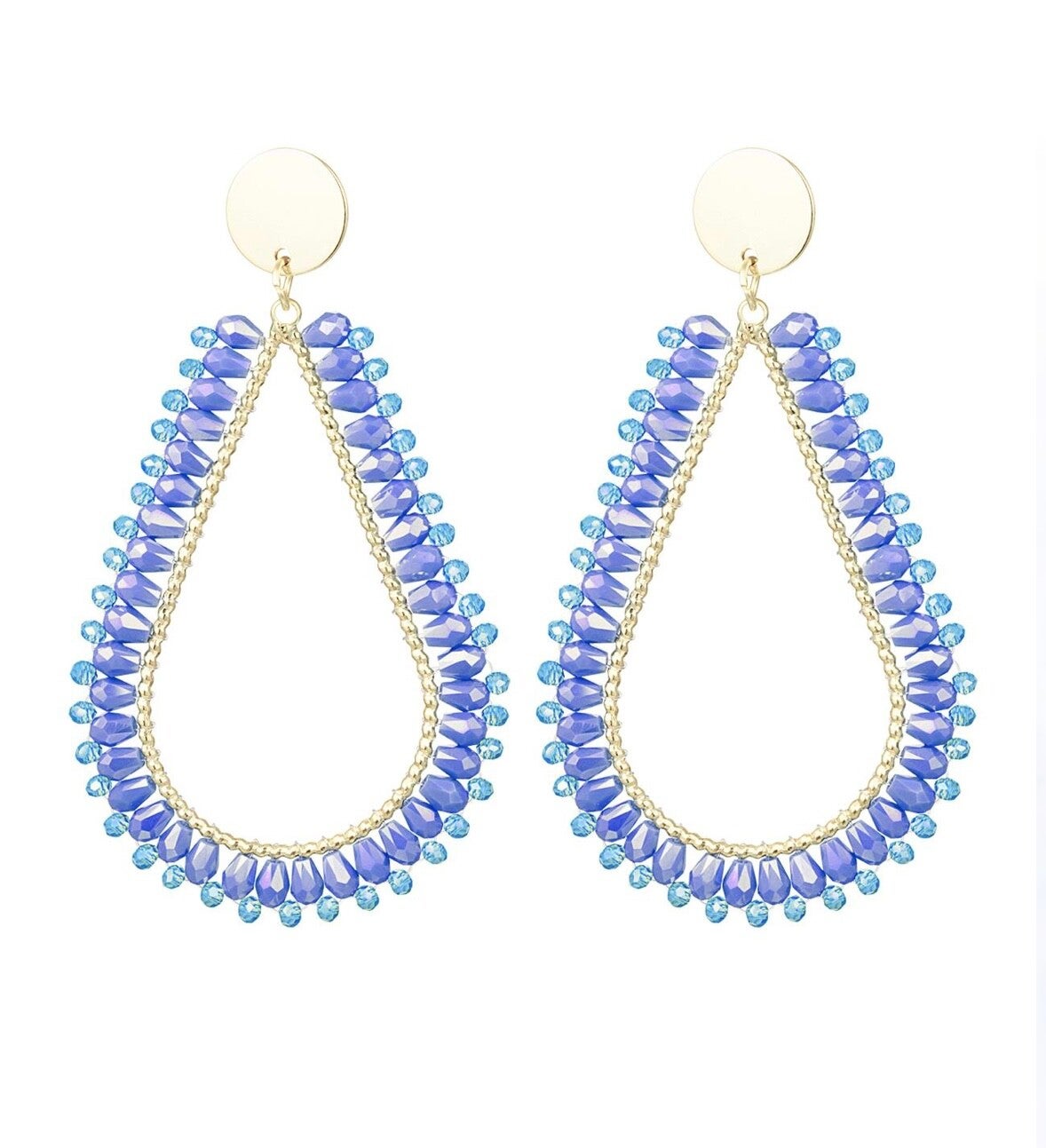 Oorbellen druppel kristalkralen blauw & Gold