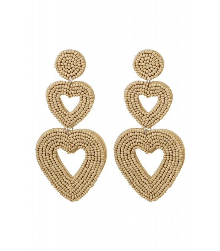 Dubbele hart oorbellen beige Glas