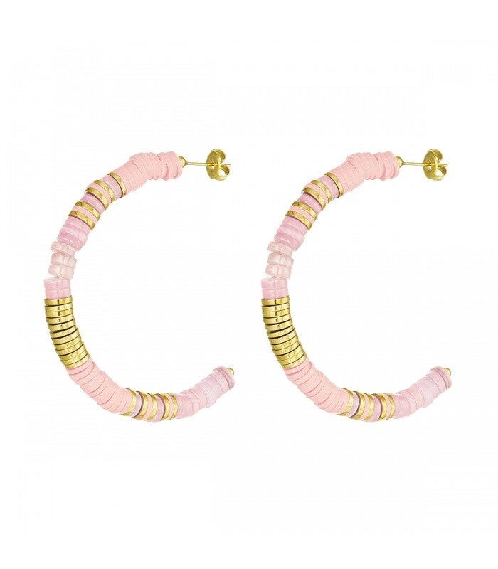 Roze met goudkleurige platte kralen oorhangers