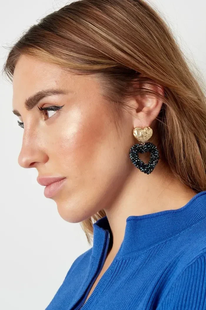Oorbellen hart van kralen - goud/zwart