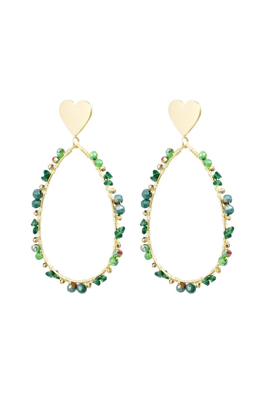 Oorbellen ovaal met kraaltjes en hart - Goud kleur Green