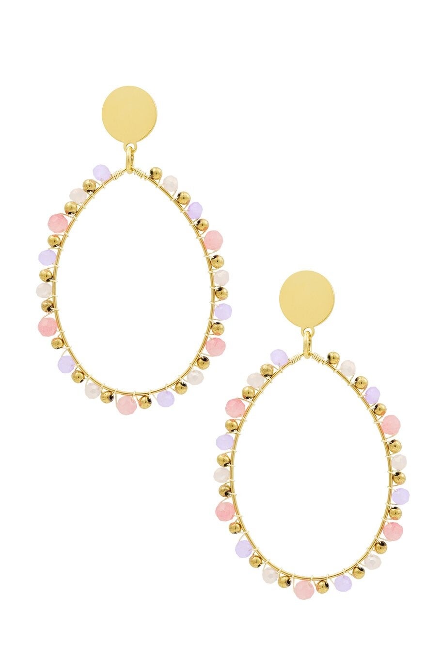oorbellen ovale hanger met kralen Pink