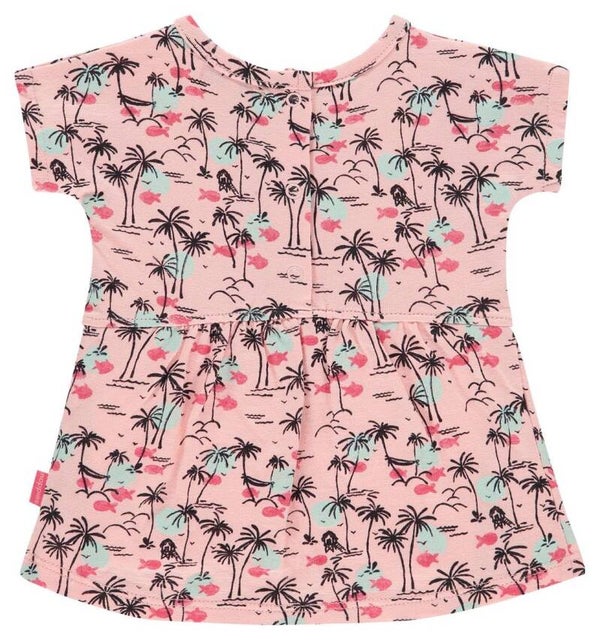 In dit jurkje is je dochtertje helemaal klaar voor de zomer! De vrolijke print het leuke kleurtje en de luchtige stof zijn de perfecte combinatie. Het jurkje valt lekker losjes waardoor je kindje zich er heel comfortabel in voelt. Het jurkje heeft drukknoopjes op de rug wat het aan- en uitkleden net even makkelijker maakt. Ook goed om te weten: dit kledingstuk heeft het GOTS-label wat betekent dat het voor tenminste 70% is gemaakt van organic katoen.