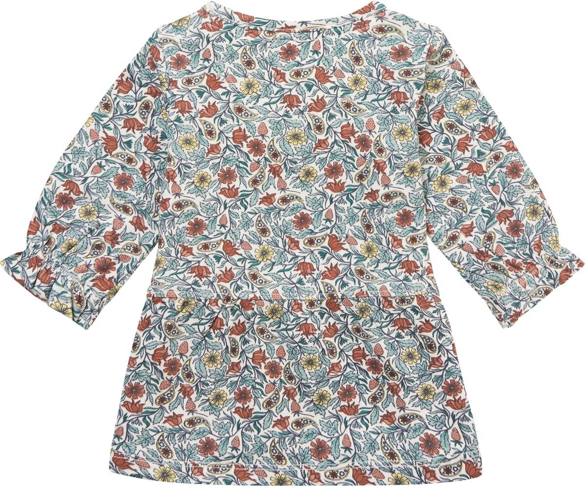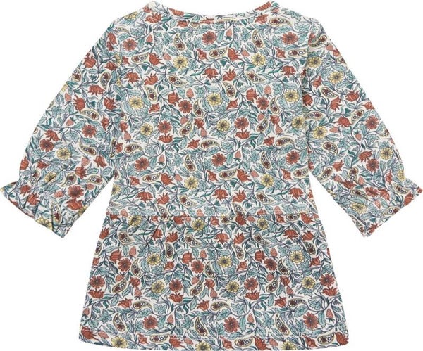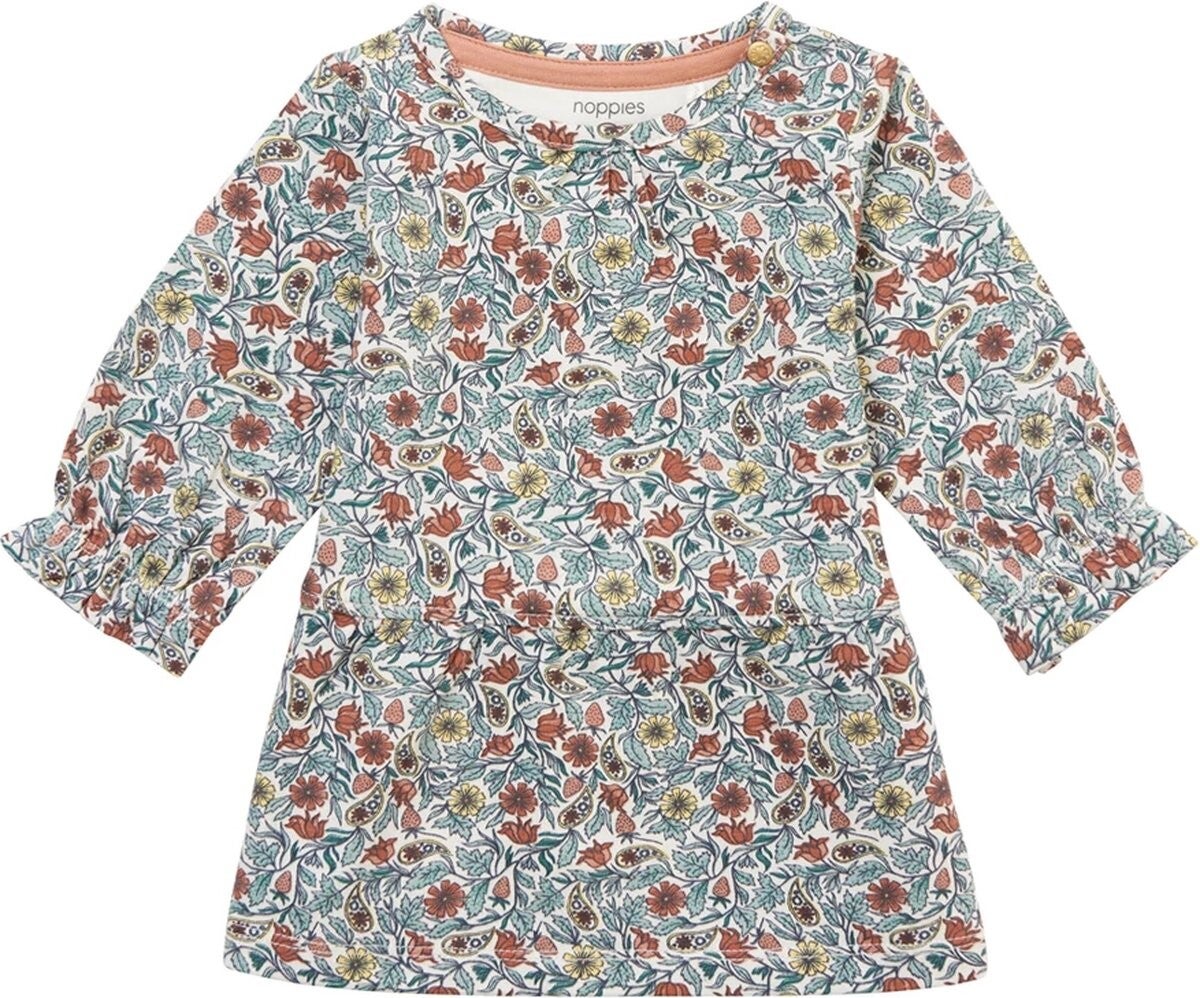 Lief jurkje uit de Noppies Baby collectie met bloemen- en paisleyprintje. Jurkje Newport heeft lange mouwen en plooitjes onder de halslijn. De mouwtjes hebben elastische boorden met een schattig ruffelrandje. Naast de halslijn zit een handig drukknoopje om het verkleden en verschonen een stuk makkelijker te maken.
