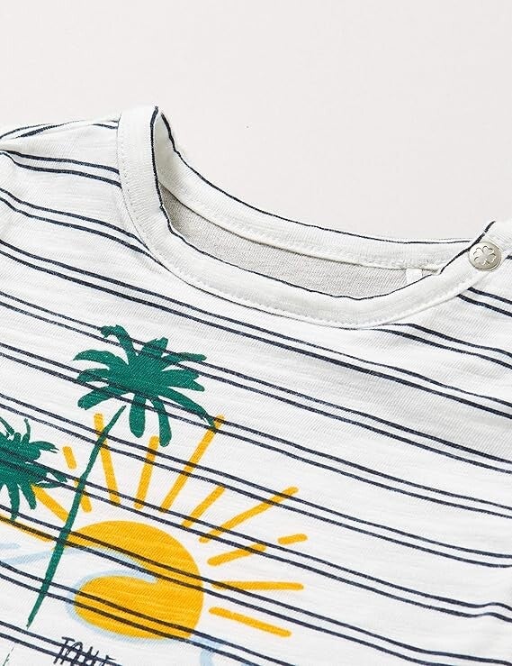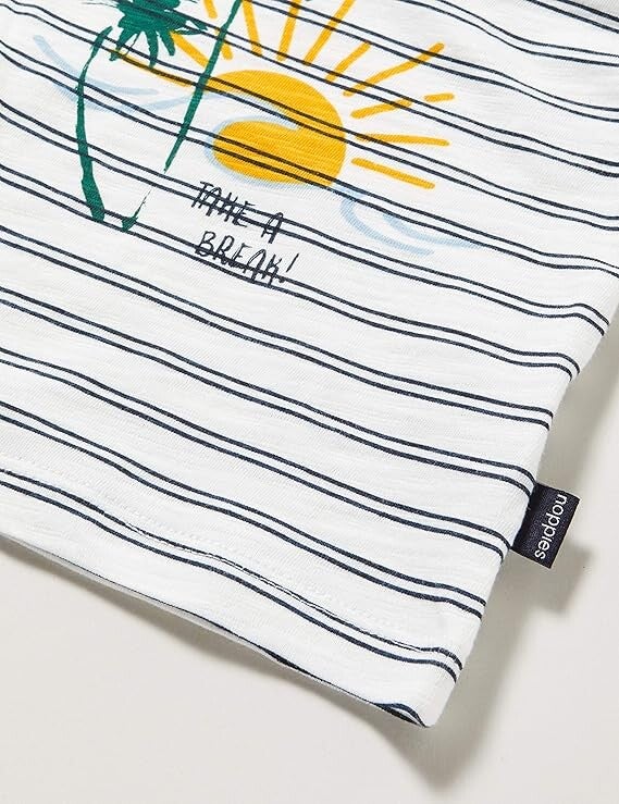 Krijg je meteen zin in de zomer als je dit shirt ziet? Je kindje ziet er fantastisch uit. Of je nu op vakantie bent of lekker thuis aan het spelen bent. En deze quote is natuurlijk een mooie reminder aan jezelf: neem even pauze als je ze nodig hebt Het shirt heeft een drukknoopje op de schouder om het aan- en uittrekken te vergemakkelijken.