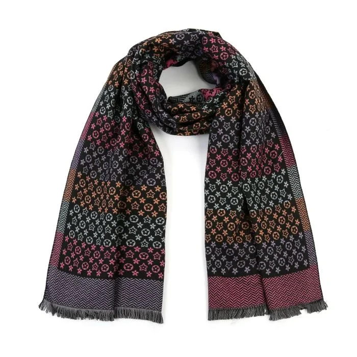 - Geef je look een sprankelende boost met onze stijlvolle sjaal van Felicia's accessoires deze sjaal afgewerkt met een glinsterend draad en een trendy logo print. Gemaakt van 100% viscose, biedt hij een luxe en comfortabele ervaring.