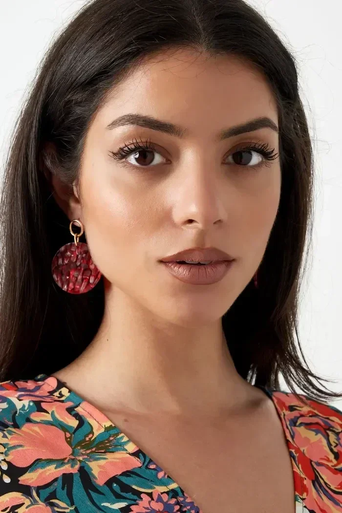 Oorbel cirkel met gouden detail rood - goud