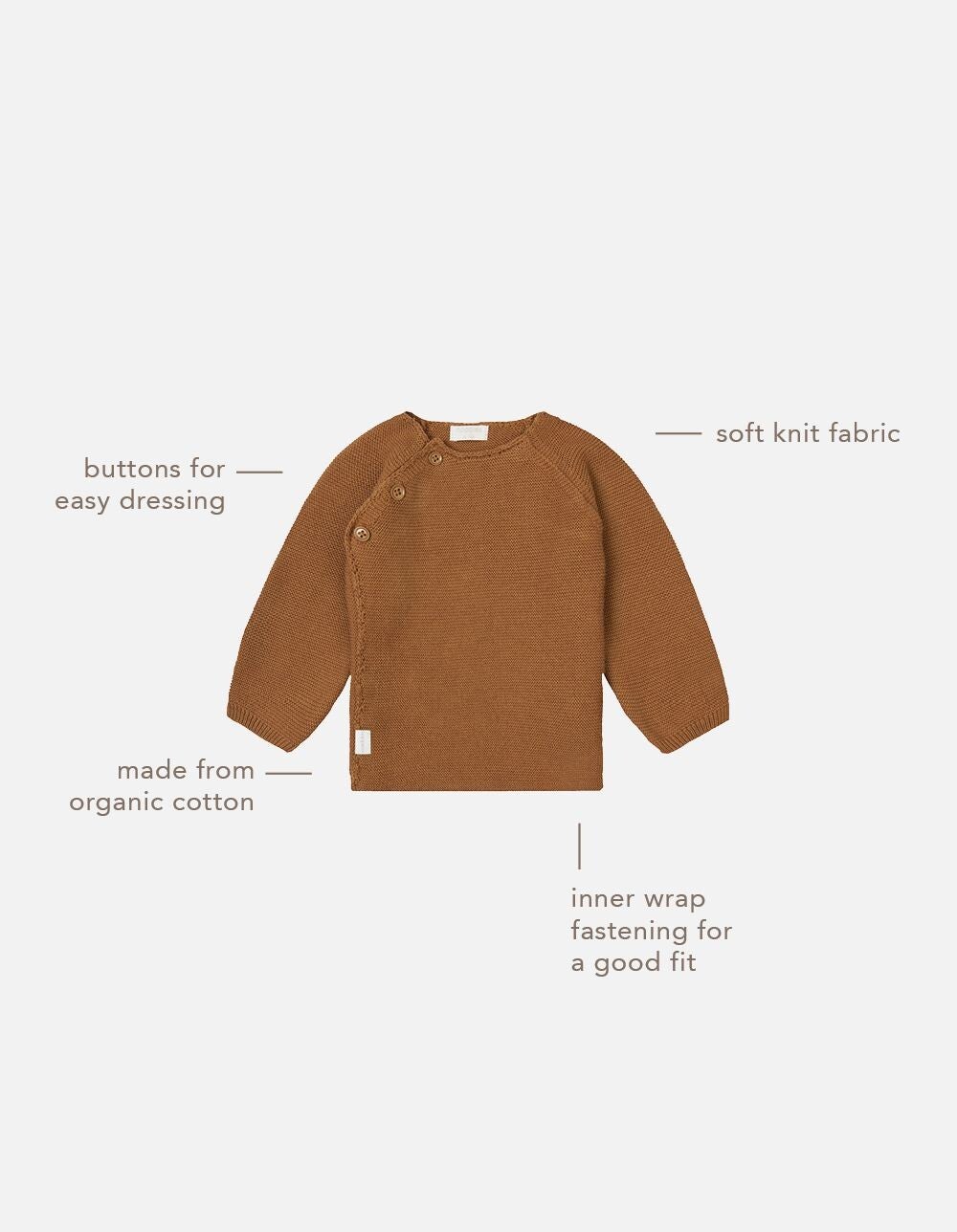 Zacht, stretchy en lief. Dit unisex vestje uit de Noppies Baby collectie is binnen no time favoriet. Vestje Pino heeft een gebreide look, een overslag en drie handige knoopjes die het aan- en uittrekken een stuk makkelijker maken.