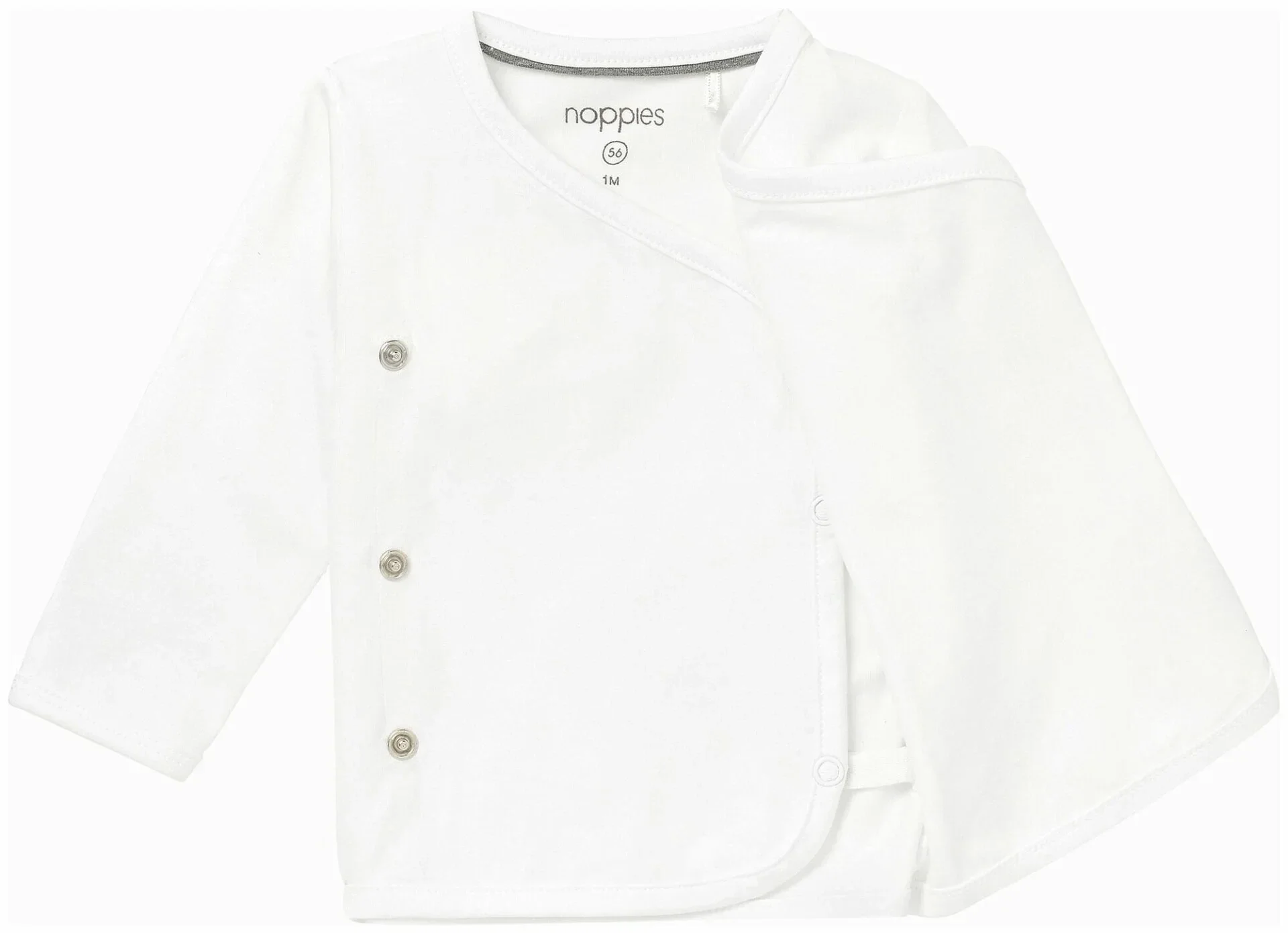 Comfortabel én stijlvol. Noppies babyshirtje Little is extreem soepel en zonder enige twijfel erg comfortabel. Niet alleen de fijne fit maakt baby’s blij… Wij weten zeker dat shirtje Little iedere baby prachtig staat, doordat ze uitgevoerd is in fris wit. Schattige toevoeging: de subtiele klavertjes vier waarmee onze designers dit shirtje versierden. Fijn voor mama: dit overslag shirt knoop je makkelijk open en dicht met handige drukknoopjes. Het aankleden van jouw kleine was nog nooit zo makkelijk!