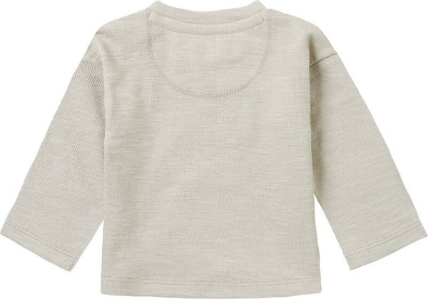 Shirt Moody Willow Grey. Comfy unisex shirt uit de Noppies Baby collectie. Longsleeve shirt Moody heeft een handig drukknoopje in de halslijn om verkleden en verschonen net wat makkelijker te maken. Het shirt heeft een kangoeroezakje op de buik en is heerlijk stretchy voor extra comfort. Deze items hebben het GOTS Organic-keurmerk.