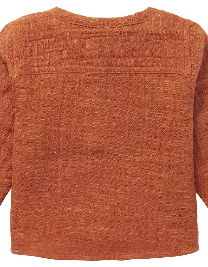 Blouse Swinton - Een licht en luchtig Noppies unisex babyblousje voor de warme zomerdagen. Gemaakt van dun, linnenachtig katoen waardoor je kleintje niet klam wordt. Door de knoopjes bij de halslijn te openen trek je de blouse makkelijk over het hoofdje aan en uit. Ook de mouwtjes hebben knoopjes zodat je ze eventueel kunt oprollen. Linksonder is het herkenbare klavertje van Noppies subtiel in de stof geborduurd