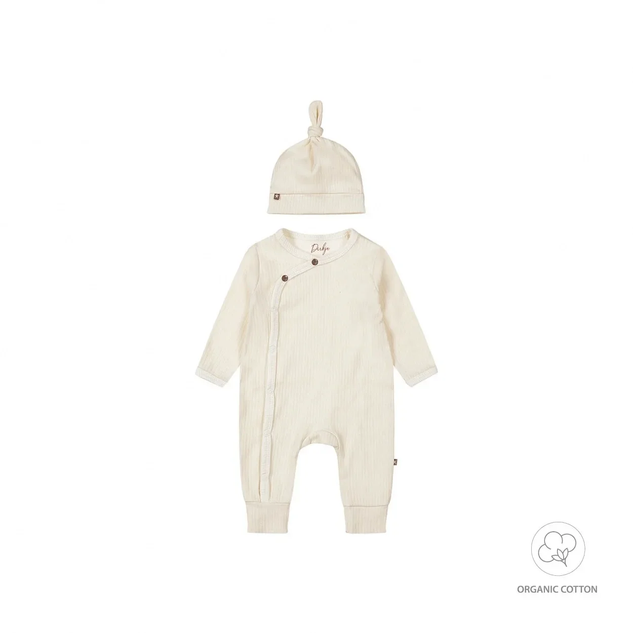 Geen roze, geen blauw - alleen maar schattigheid. Ontdek onze unisex Bio collectie voor baby's. Het Dirkje boxpakje is gemaakt van een zachte organic cotton met een geribd structuurtje in de stof. Het off white kruippakje heeft lange mouwen en lange pijpjes. De pijpjes hebben een extra lange boord zodat het met je ukkie mee kan groeien. In het begin kun je deze omslaan en naarmate je kindje groeit, uitvouwen voor extra lengte. Extra handig is de overslagsluiting met drukkers, heel makkelijk tijdens het aan- en uitkleden. Maak de outit van je kleintje compleet met het schattige mutsje. Organic cotton babykleding is de ideale keuze voor ouders die het beste willen voor hun baby's. Gemaakt van biologisch geteelde katoen, is deze kleding zacht, comfortabel en veilig voor de gevoelige huid van baby's. Bovendien draagt het bij aan een gezondere planeet door duurzame en milieuvriendelijke teeltpraktijken. Kies voor bio katoen om je baby te verwennen en de wereld te beschermen.