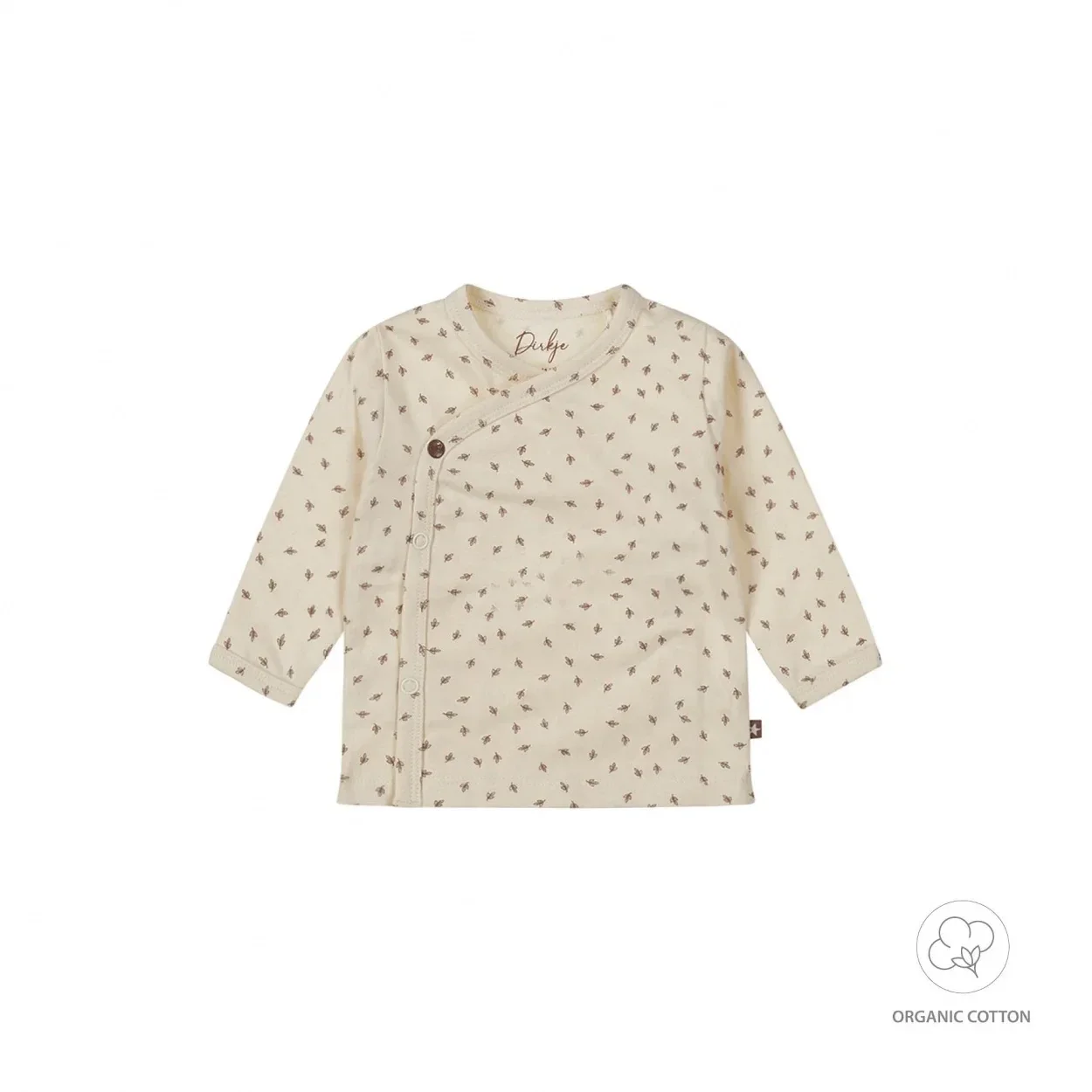 Ontdek onze unisex babykledinglijn! Deze unisex longsleeve van Dirkje is gemaakt van een zachte organic cotton met stretch. Heerlijk comfortabel, ook voor de allerkleinsten. Het shirt met lange mouwen is off white met een lieve print in bruintint. De longsleeve heeft een handige overslag wat het aan- en uitkleden van je ukkie een stuk gemakkelijker maakt. Je combineert hem met een broekje uit de Dirkje Bio collectie. Organic cotton babykleding is de ideale keuze voor ouders die het beste willen voor hun baby's. Gemaakt van biologisch geteelde katoen, is deze kleding zacht, comfortabel en veilig voor de gevoelige huid van baby's. Bovendien draagt het bij aan een gezondere planeet door duurzame en milieuvriendelijke teeltpraktijken. Kies voor bio katoen om je baby te verwennen en de wereld te beschermen.