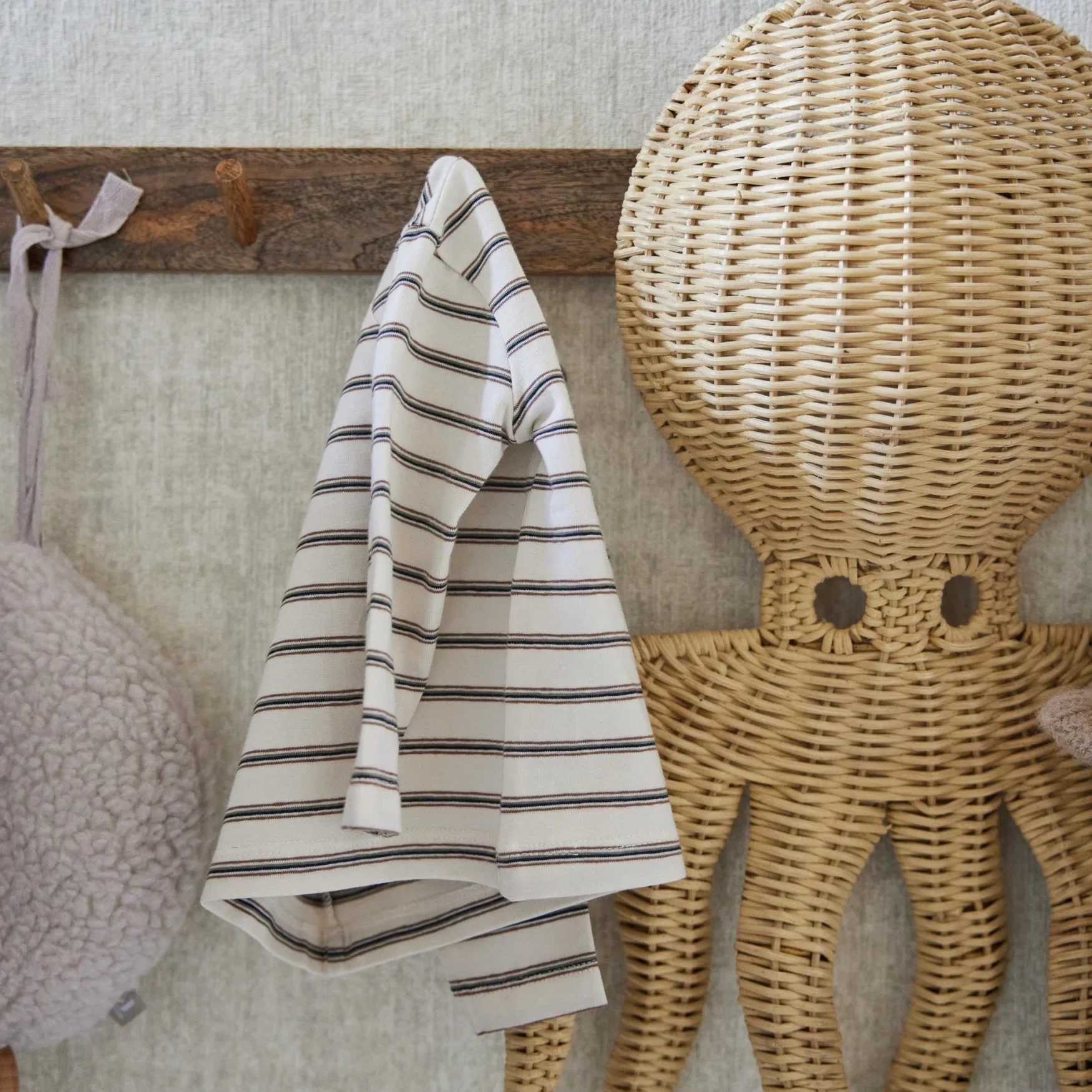 Dirkje jongens baby bio longsleeve off white bruin gestreept (Maat 56)