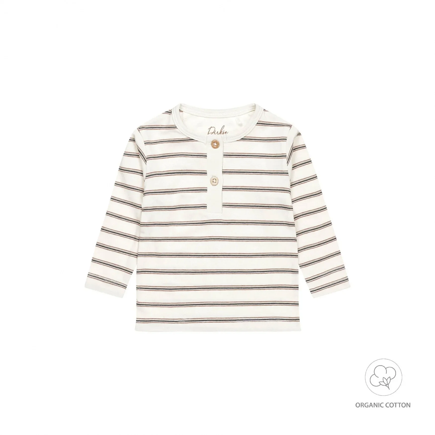 Alleen maar het beste voor je kleintje. Deze Dirkje longsleeve is gemaakt van een zachte organic cotton met stretch. Heerlijk comfortabel voor je mannetje. Het baby shirt met lange mouwen is off white van kleur en voorzien van een donkerblauw, groen en bruin streepje en knoopjes aan de voorzijde. Hij is perfect te combineren met een van de broekjes uit de Dirkje Bio collectie. Gemaakt van biologisch geteelde katoen, is deze kleding zacht, comfortabel en veilig voor de gevoelige huid van baby's. Bovendien draagt het bij aan een gezondere planeet door duurzame en milieuvriendelijke teeltpraktijken. Kies voor bio katoen om je baby te verwennen en de wereld te beschermen.