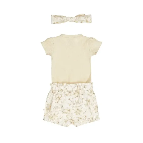 Dirkje meisjes baby set: romper, shorts en haarband off white Maat 74)