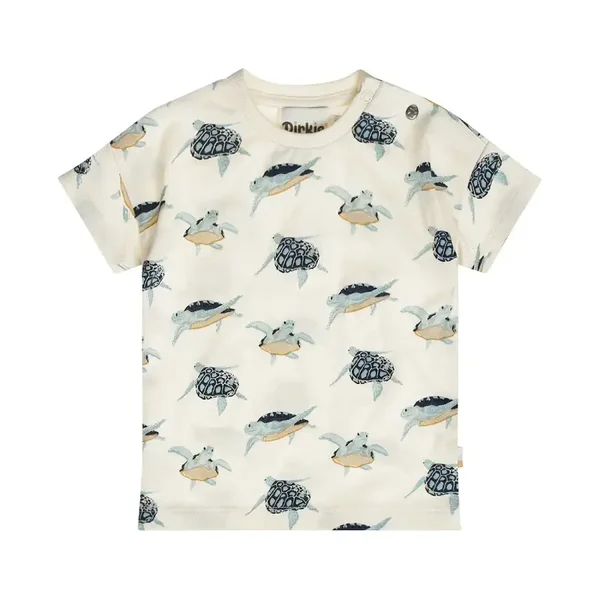 Op zoek naar een schattige basic met print? Dit Dirkje T-shirt in off white met kleine schildpadjes is een fijne keuze voor warm weer en vrolijke dagen. Door de soepele katoen met stretch zit het shirt comfortabel van ochtend tot bedtijd. Voor de kleinste maatjes tot en met 86 zijn er drukkers op de schouders, handig bij het omkleden van je kleintje. Dit shirt met korte mouwen voor jongens is een echte topper in de zomergarderobe.